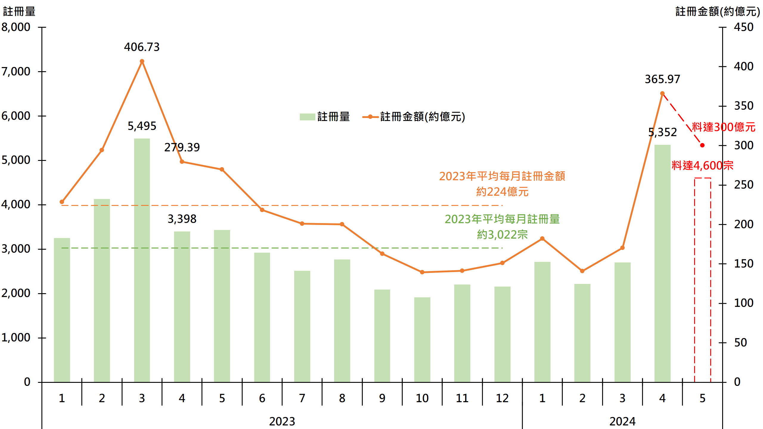 圖:每月二手住宅註冊量及註冊金額
