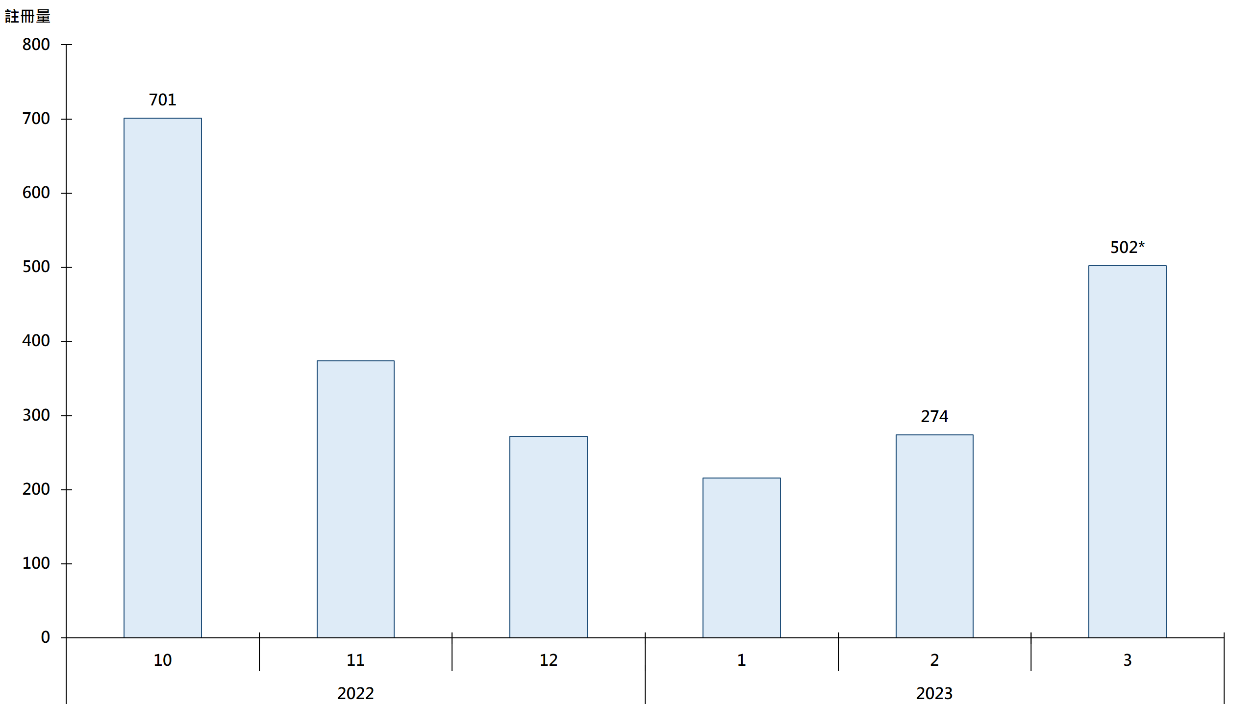 據土地註冊處資料顯示,純車位本月至今(截至3月27日)錄502宗註冊,已超2月全月的274宗約83.2%,創5個月新高(見圖)。鑑於簽署買賣合約至遞交到土地註冊處註冊登記需時,3月註冊個案一般主要反映2月市況。
