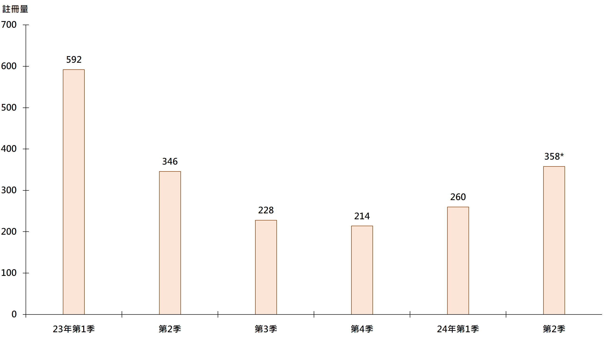 據土地註冊處資料顯示,本季至今(截至6月20日)將軍澳區20個私人屋苑錄358宗註冊,較首季的260宗增加約37.7%,創5季新高(見圖)。