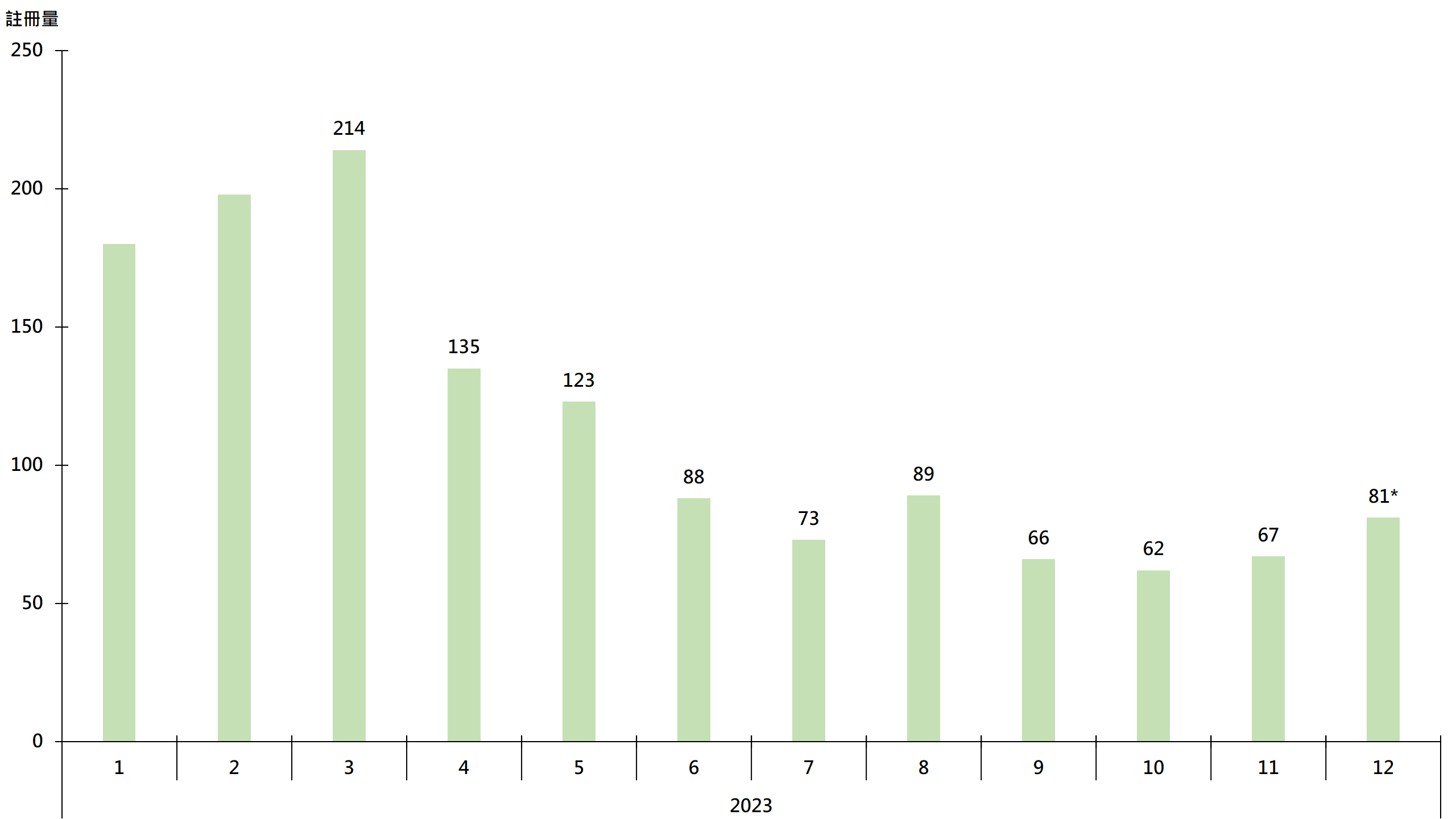 鑑於簽署買賣合約至遞交到土地註冊處註冊登記需時,每月註冊個案一般主要反映前一個月市況