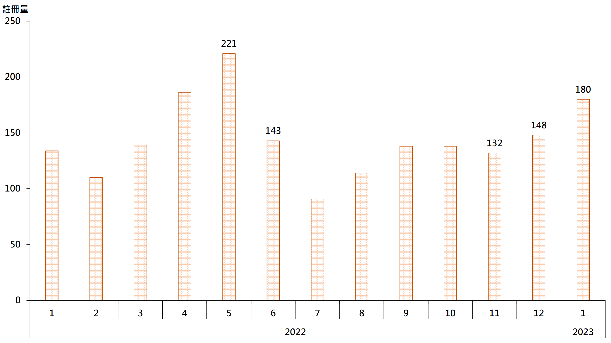據土地註冊處資料顯示,1月將軍澳區20個私人屋苑錄180宗註冊,較去年12月的148宗增加約21.6%,創8個月新高(見圖)。鑑於簽署買賣合約至遞交到土地註冊處註冊登記需時,今年1月註冊個案一般主要反映去年12月市況。