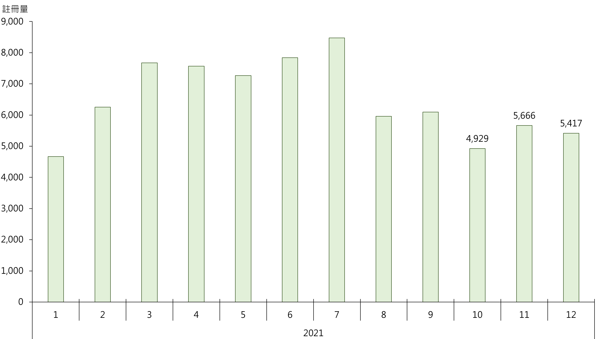 據土地註冊處最新資料顯示,21年12月錄5,417宗整體住宅物業註冊(包括一手私宅,二手住宅,但撇除一手公營房屋),較21年11月的5,666宗減少約4.4%。鑑於簽署買賣合約至遞交到土地註冊處註冊登記需時,去年12月註冊個案一般主要反映11月市況。