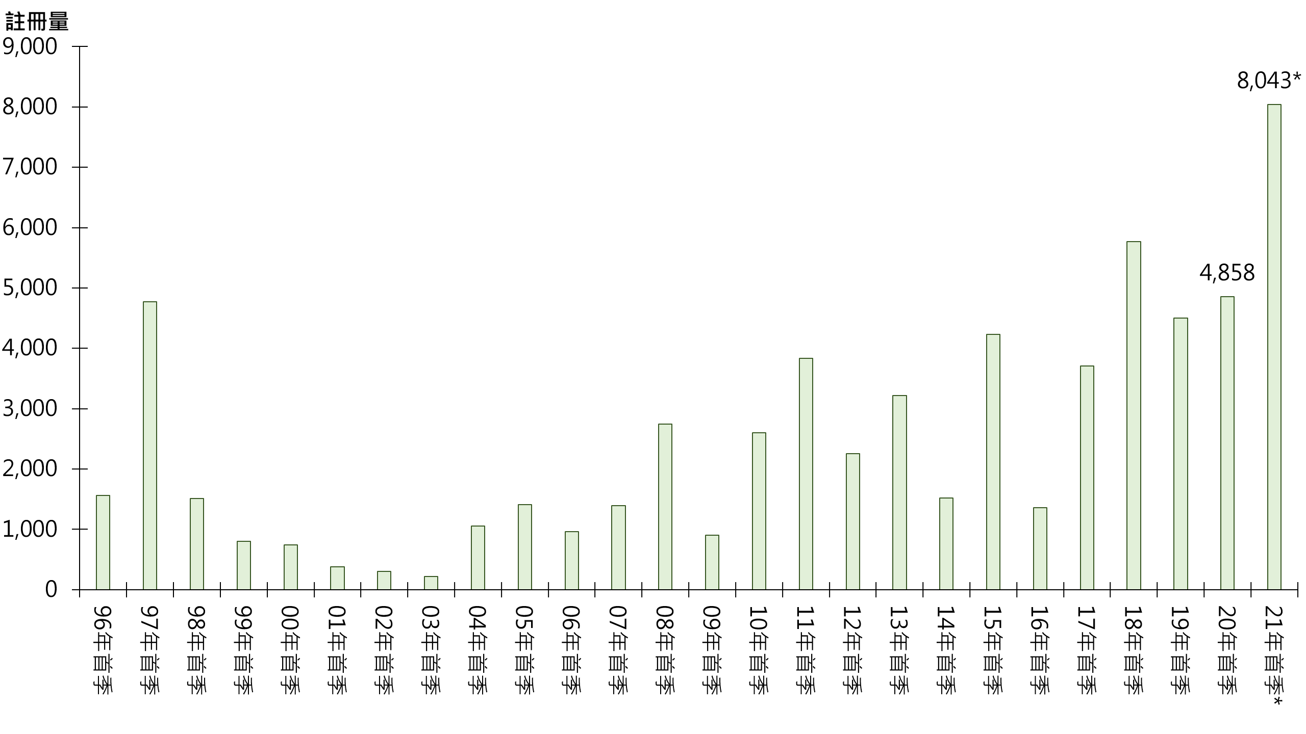 圖:每年首季逾500萬至1,000萬元二手住宅註冊量走勢