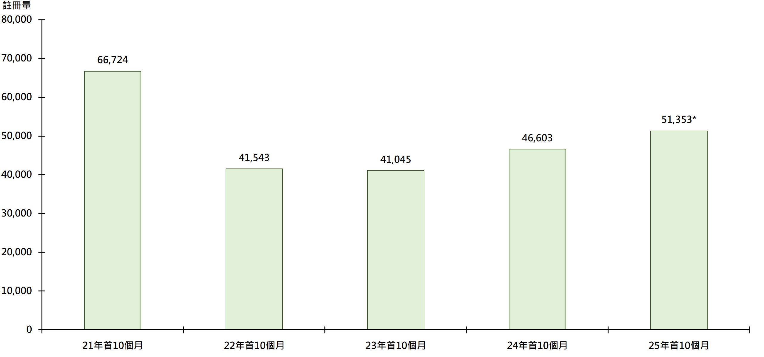 圖:每年首10個月住宅物業註冊量