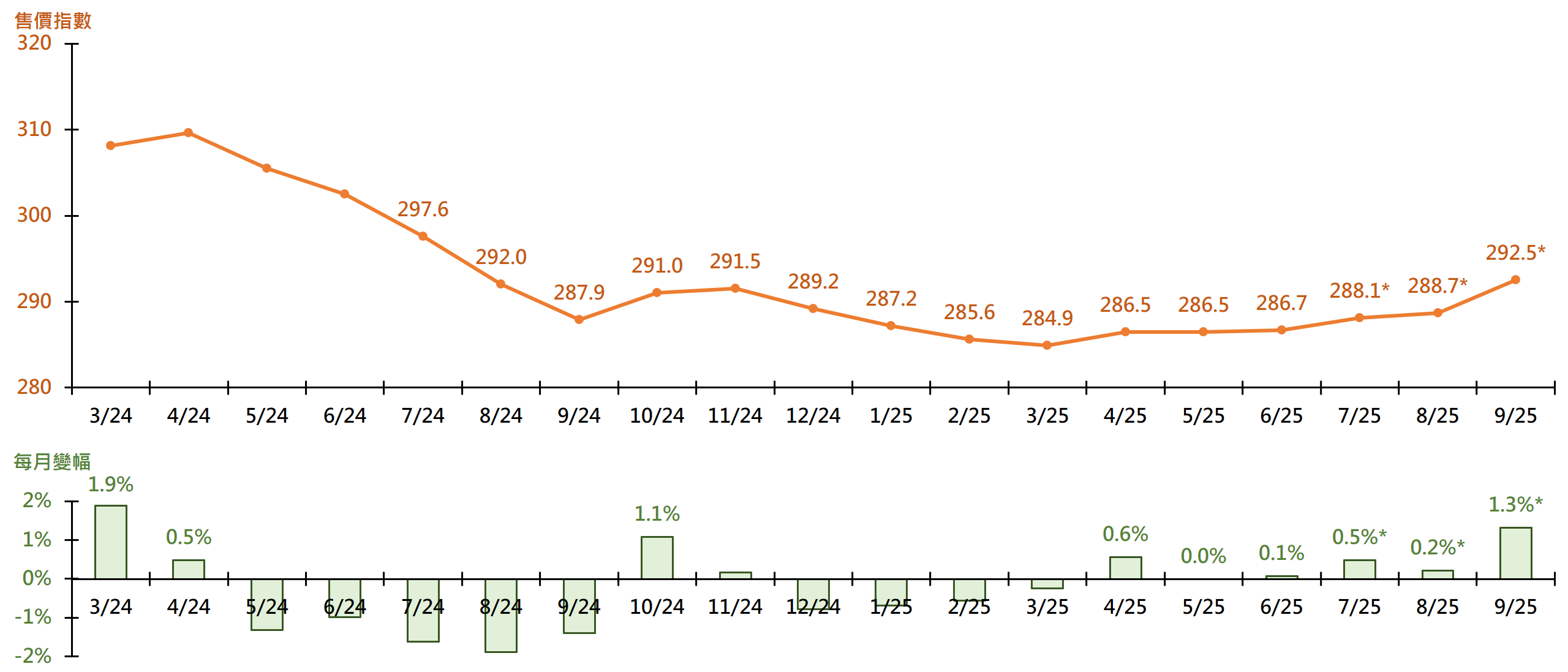 圖︰每月差估署私人住宅售價指數及變幅