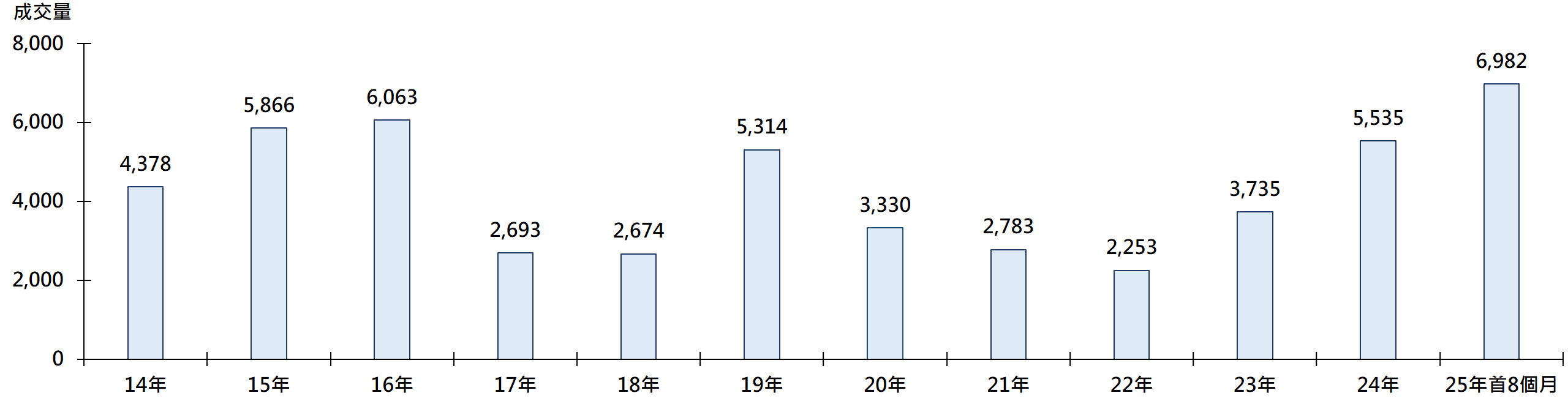 圖:每年600萬元或以下新盤成交