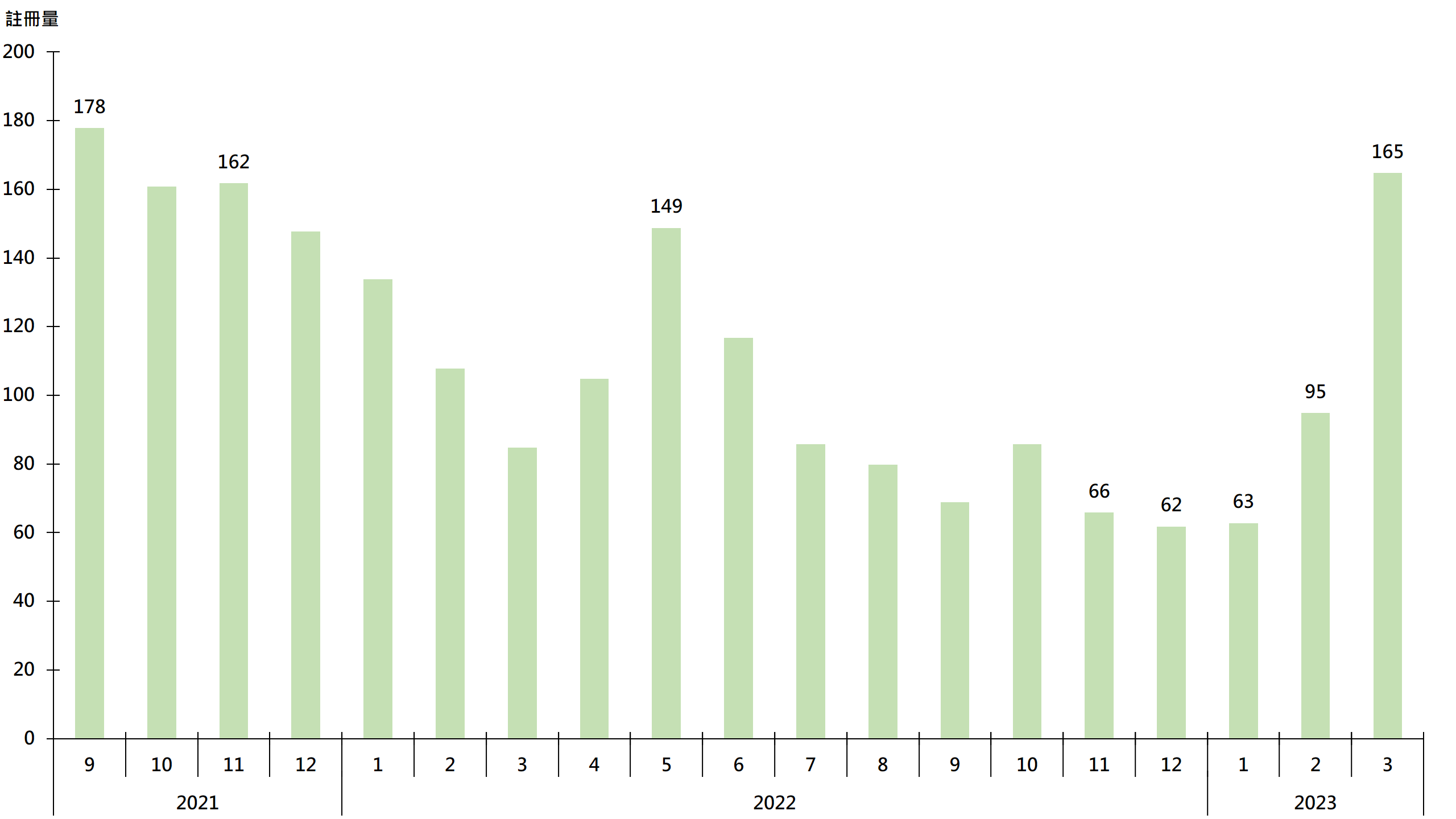 鑑於簽署買賣合約至遞交到土地註冊處註冊登記需時,每月註冊個案一般主要反映前一個月市況