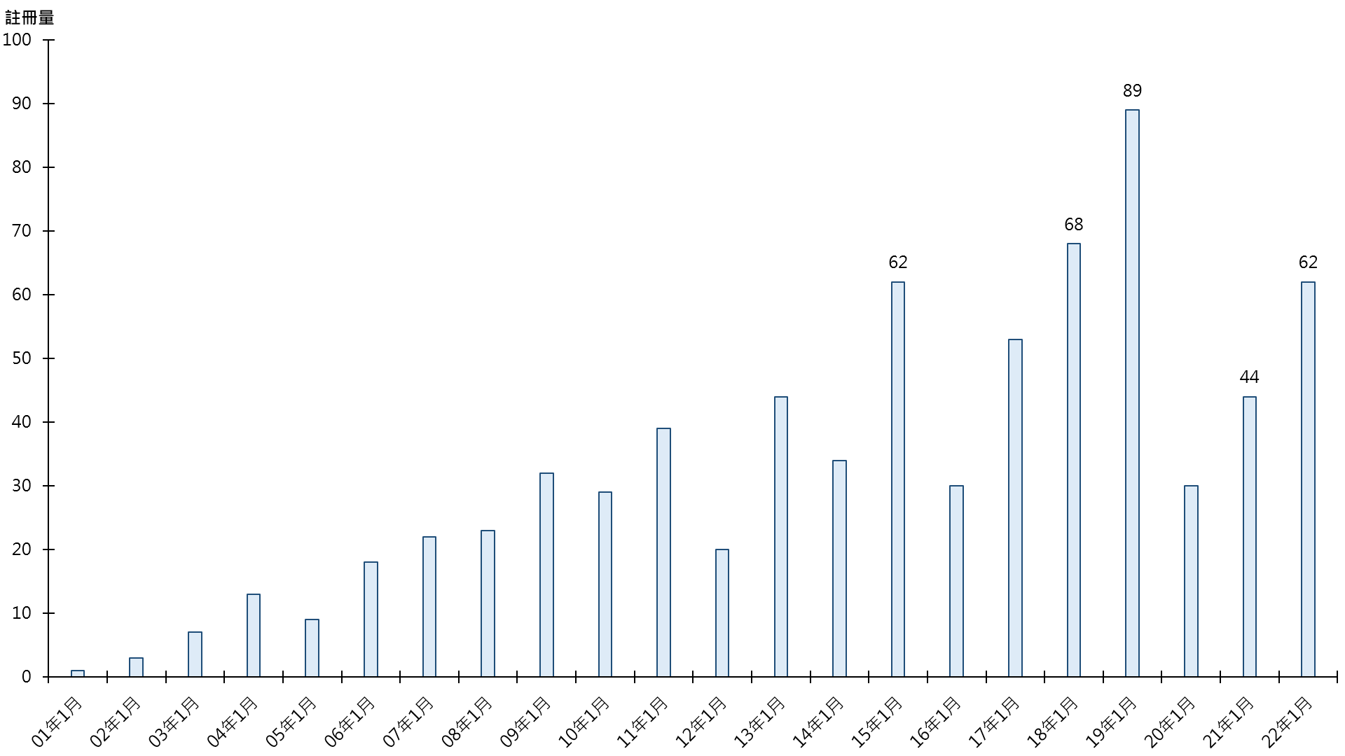 雖然二手公屋錄註冊量按月錄跌,但以按年同期計,則較21年1月的44宗增加約40.9%,並與15年1月錄得的註冊宗數同創歷年同期第三高(見圖)。