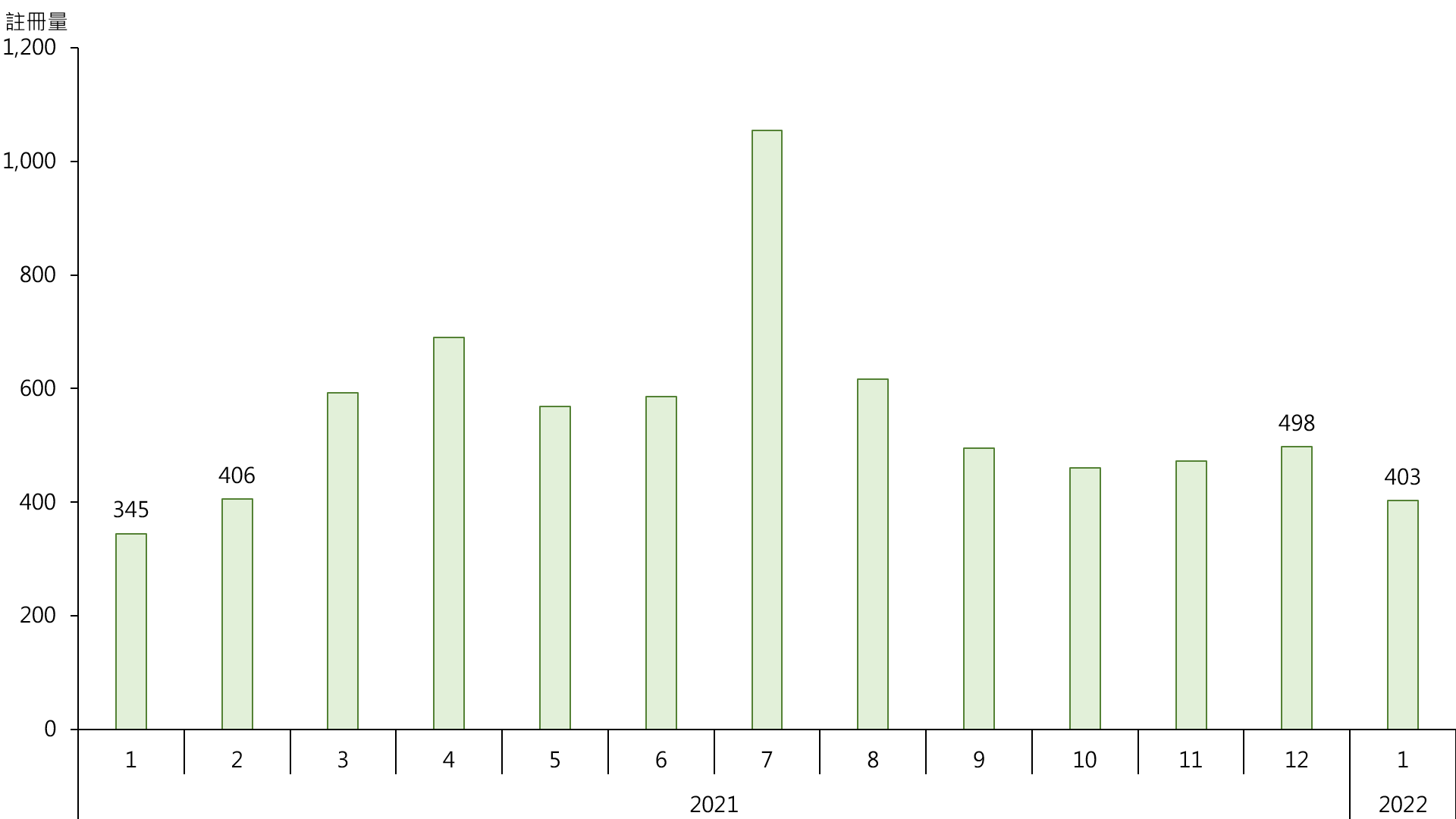 圖︰每月二手居屋註冊量走勢