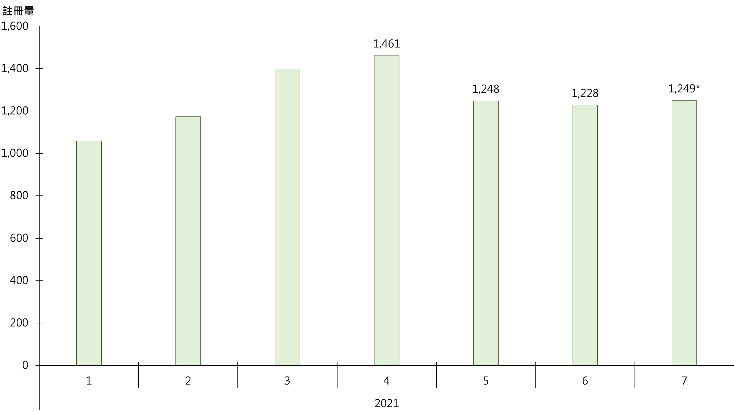 鑑於簽署買賣合約至遞交到土地註冊處註冊登記需時,每月註冊個案一般主要反映前一個月市況