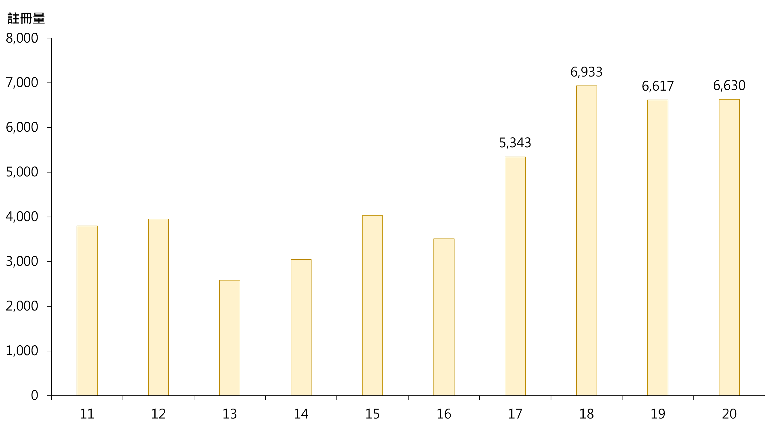 據土地註冊處資料顯示,2020年錄6,630宗逾千萬元二手住宅註冊,較2019年的6,617宗微增約0.2%,連續3年企穩逾6千宗水平(見圖)。