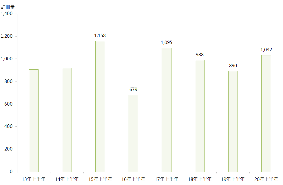 據土地註冊處資料顯示,本行選取的將軍澳區20個私人屋苑今年上半年錄1,032宗二手註冊,較去年同期的890宗增加約16.0%,表現較整體二手按年同期下跌約6.5%為佳,亦創近3年同期新高 (見圖)。