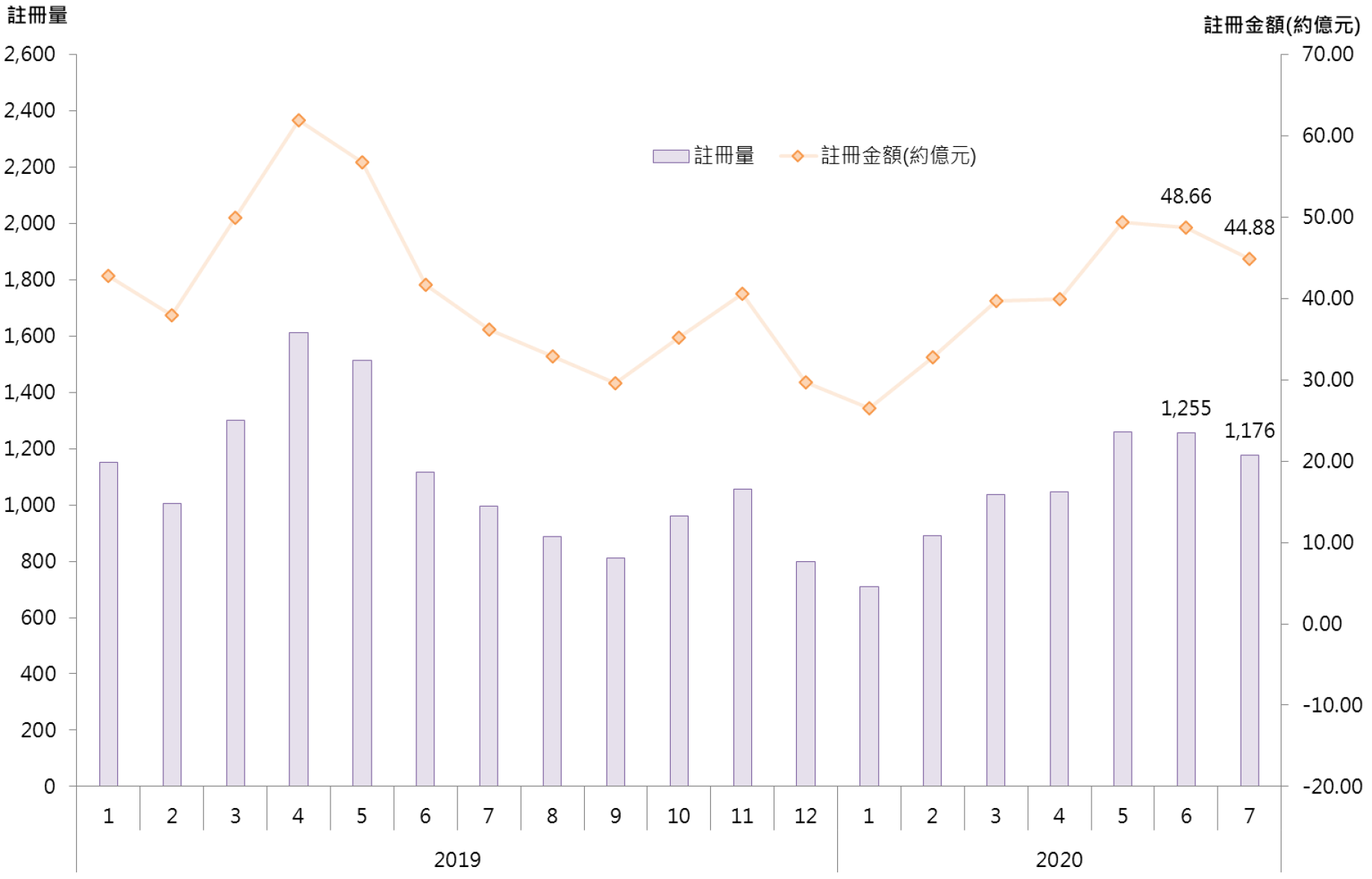 據土地註冊處最新資料顯示,7月500萬元或以下二手住宅錄1,176宗註冊,較6月的1,255宗減少約6.3%;涉及註冊金額錄約44.88億元,較6月約48.66億元減少約7.8% (見圖)。鑑於簽署買賣合約至遞交到土地註冊處註冊登記需時,7月註冊個案一般主要反映6月市況;數字未反映最近疫情對樓市影響。