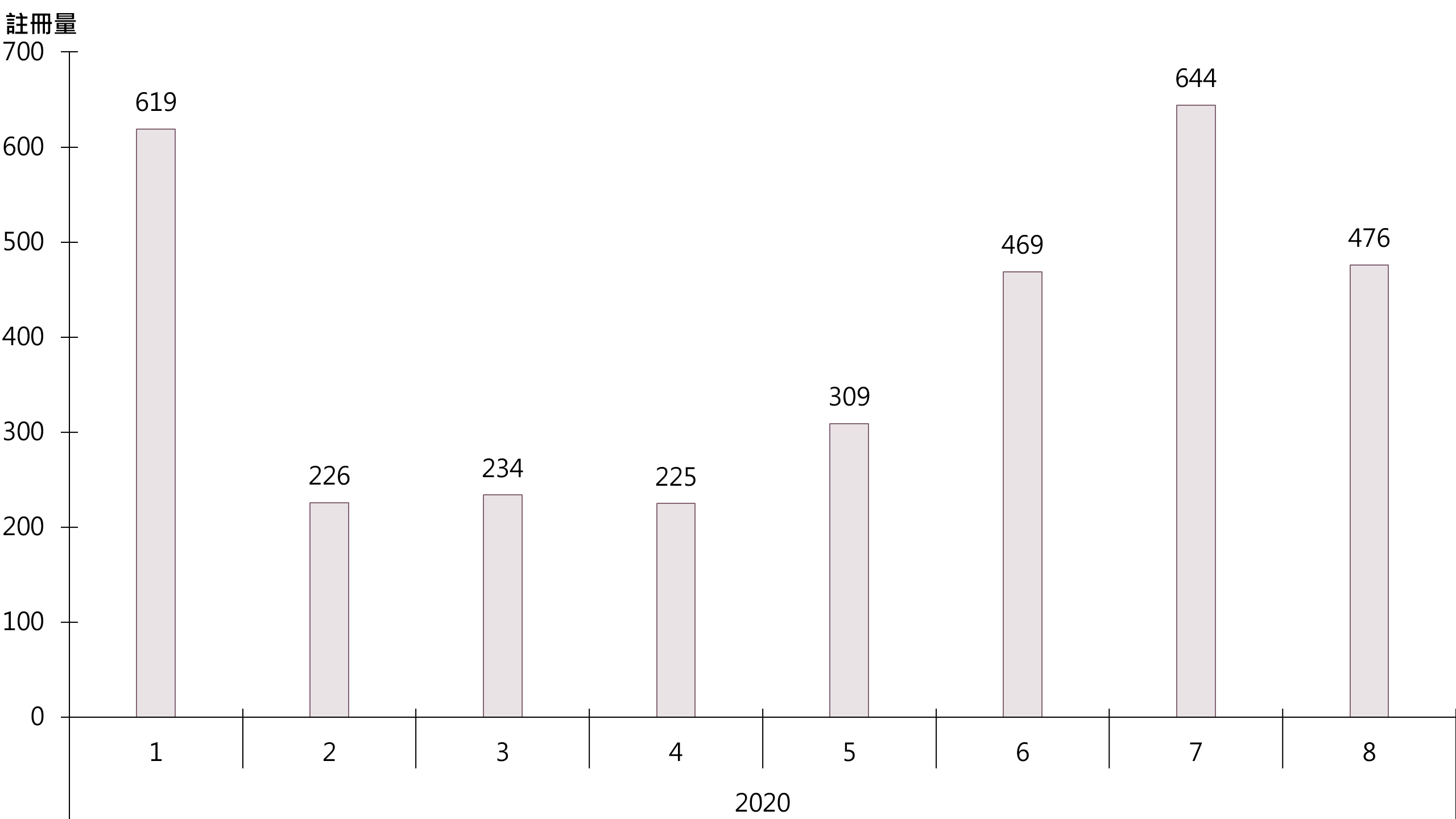 據土地註冊處資料顯示,8月錄476宗純車位註冊,較7月的644宗減少約26.1% (見圖)。除了反映疫情的影響外,亦因7月錄大型新盤項目拆售的車位個案註冊登記,推升該月註冊數字,令8月註冊量「明顯」下跌。